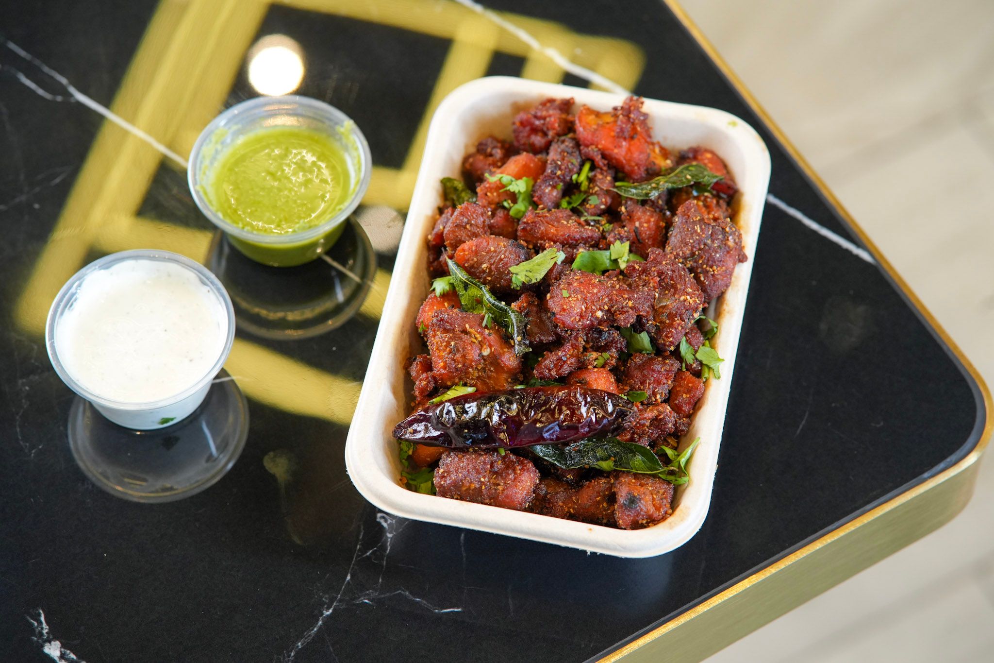 Chargrilled chicken marinated in yogurt and Indian spices, smoky and flavorful.